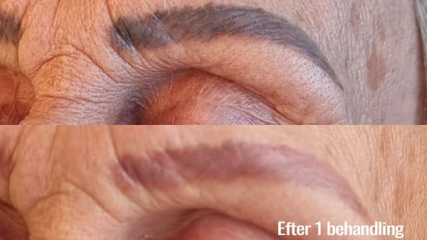 Permanent Makeup (PMU), hvor vi med laser fjerner farvet/tatoveret bryn.